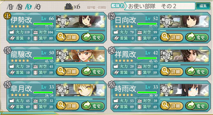 夜戦をする時に、先制を譲る事になってしまうが、道中の安定感を増すためにはやむなし。。。