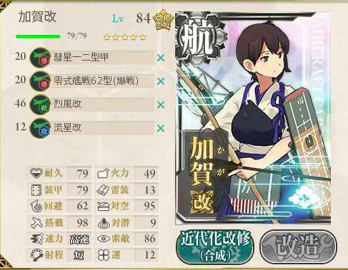 加賀は攻撃重視で艦爆2と艦攻を搭載。