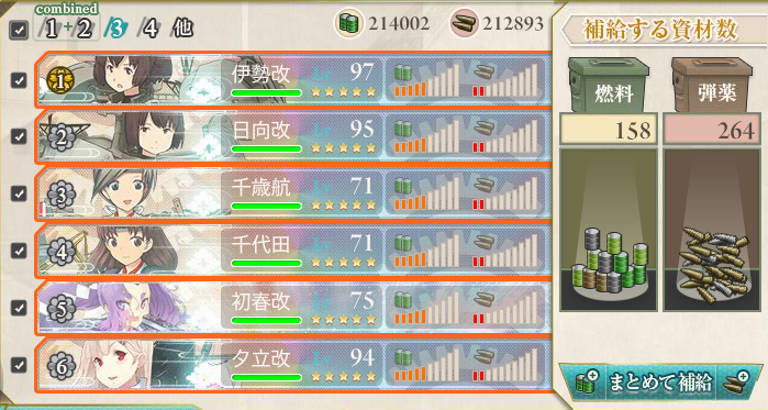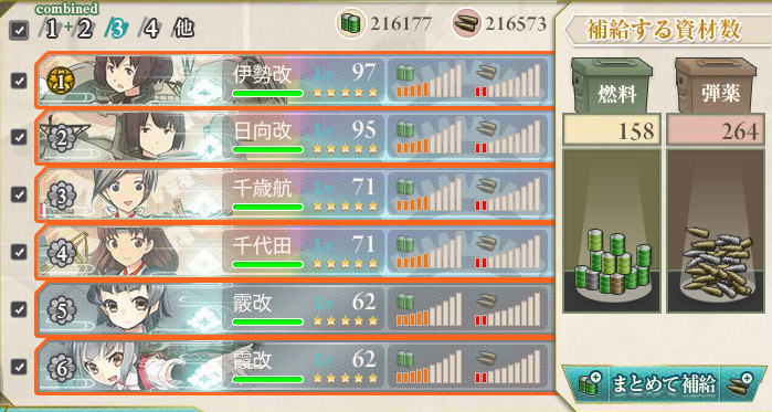 1周合計 燃料264 弾薬469 ボーキちょこっと。
