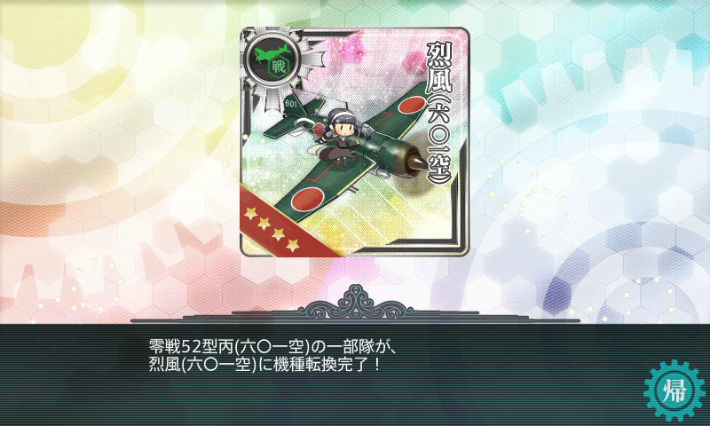 というわけで、サクッとクリアして【飛龍改二】の任務同様、機種転換の任務を受けて烈風を2機破棄する。