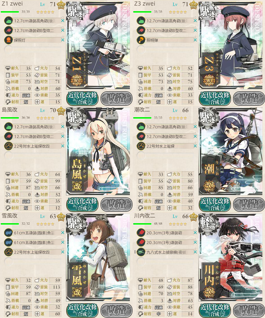 Z2、島風、川内の3隻が大破し、敵は
