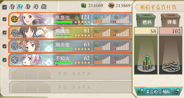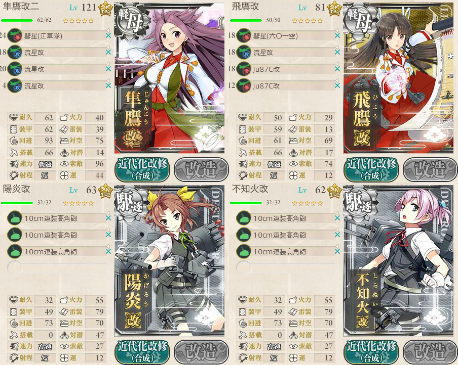 道中支援艦隊は軽空2+駆逐2のエコ支援艦隊。