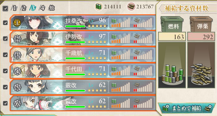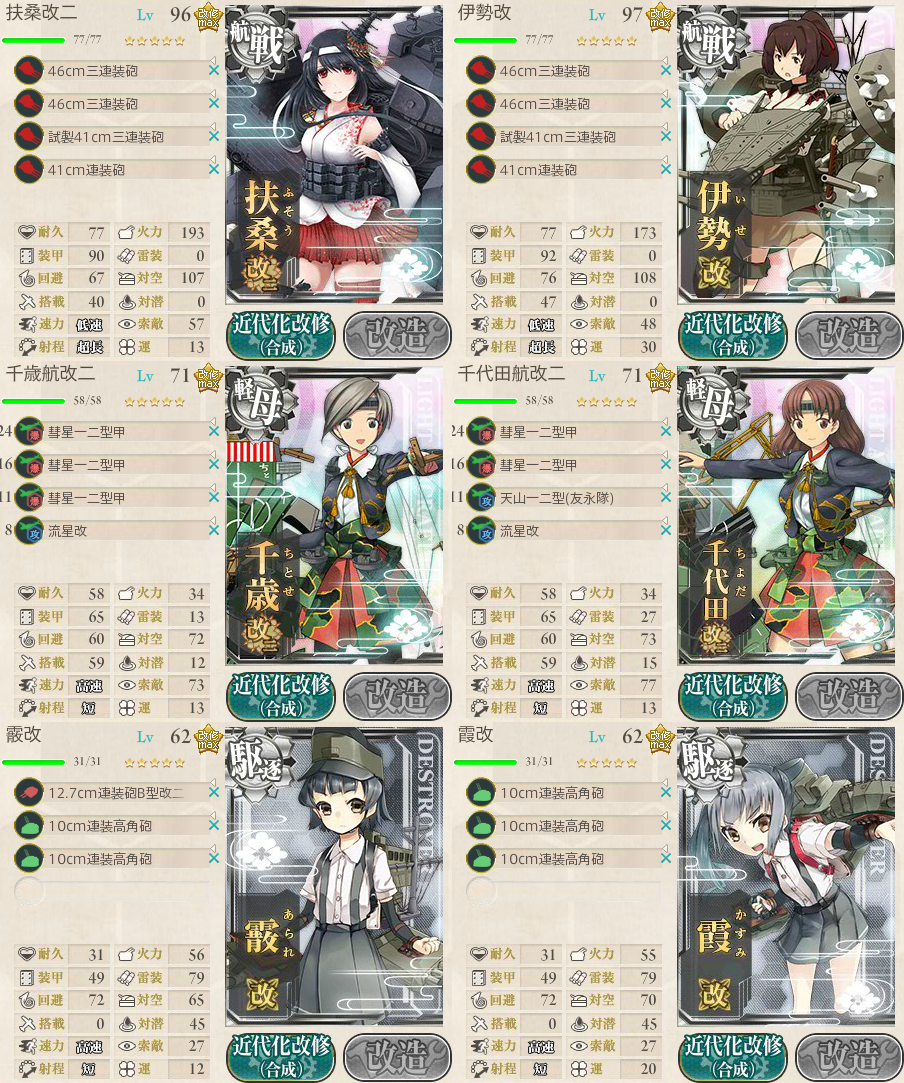 決戦支援艦隊はエコ支援に主砲ガン積みの航戦2を加えたもの。