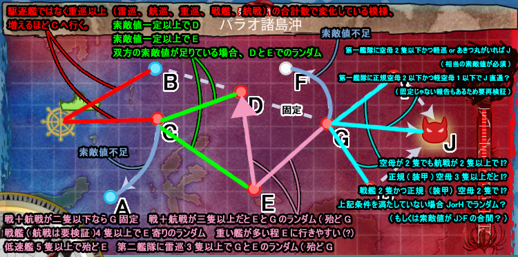●第一艦隊に空母2隻以下かつ軽巡orあきつ丸がいればJ(相当の索敵値が必須)