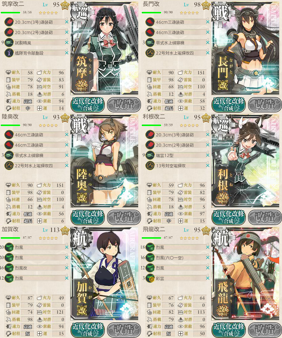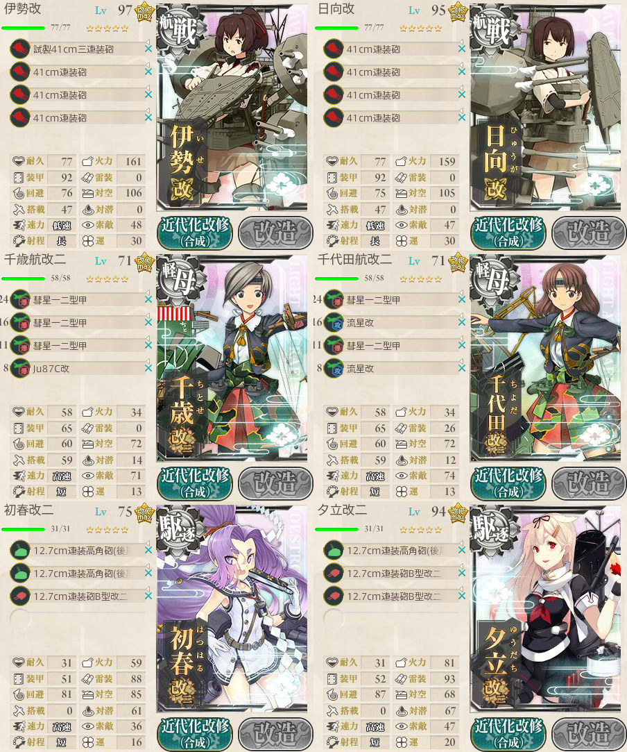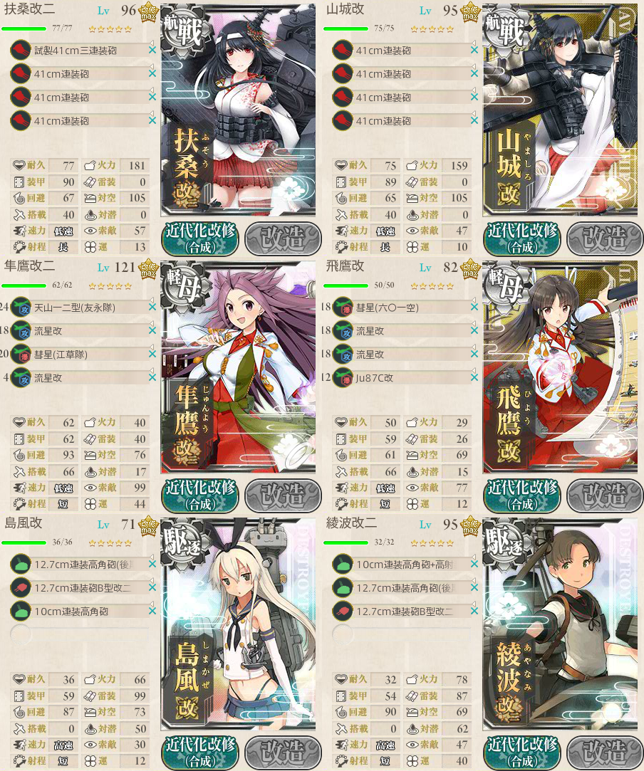 3,4回旗艦撃破に失敗したため、支援艦隊に少しテコ入れ。