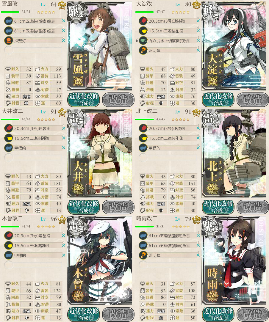 E-1・2/E-3で使用した艦も『全て』投入可能なので、夢の雷巡フル艦隊が編成可能です。