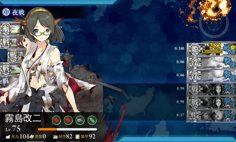 昼戦で港湾棲姫に中破にされた霧島さんが連撃をブッパ!