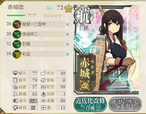 搭載数が多い加賀に烈風改を搭載。