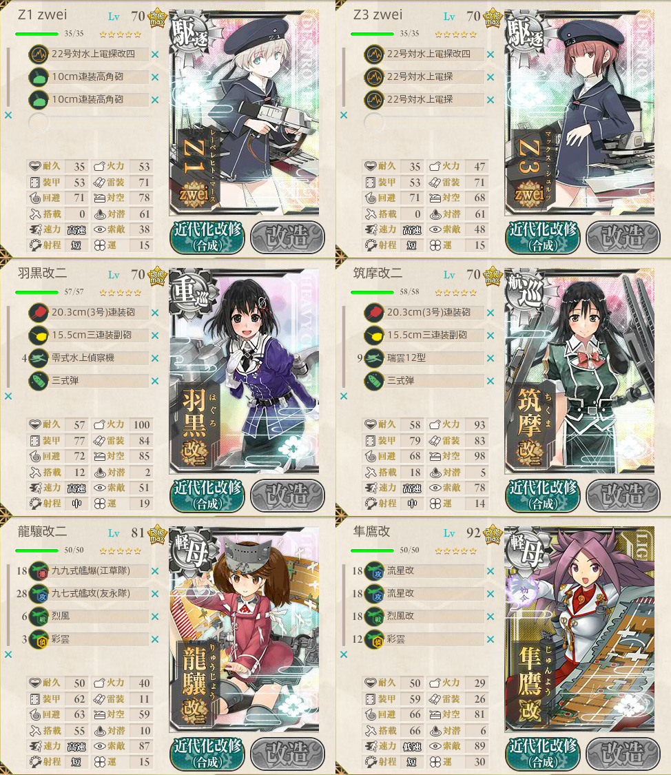 そこで、愛宕改を筑摩改二に変更、Z3の装備も電探ガン積みに。