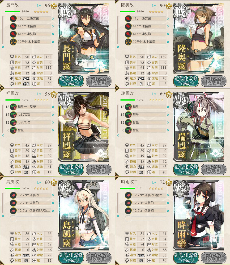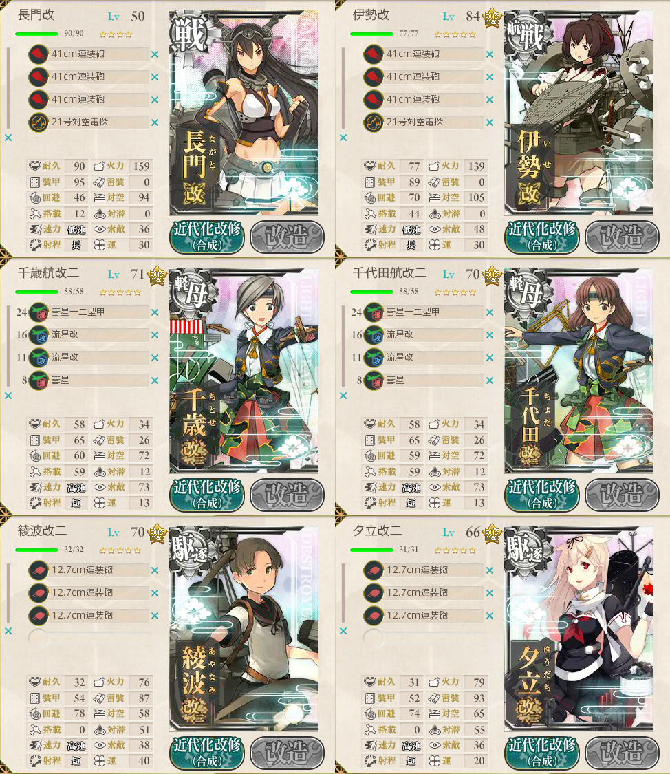 前回のイベントと建造で入手した長門をフル活用してます。