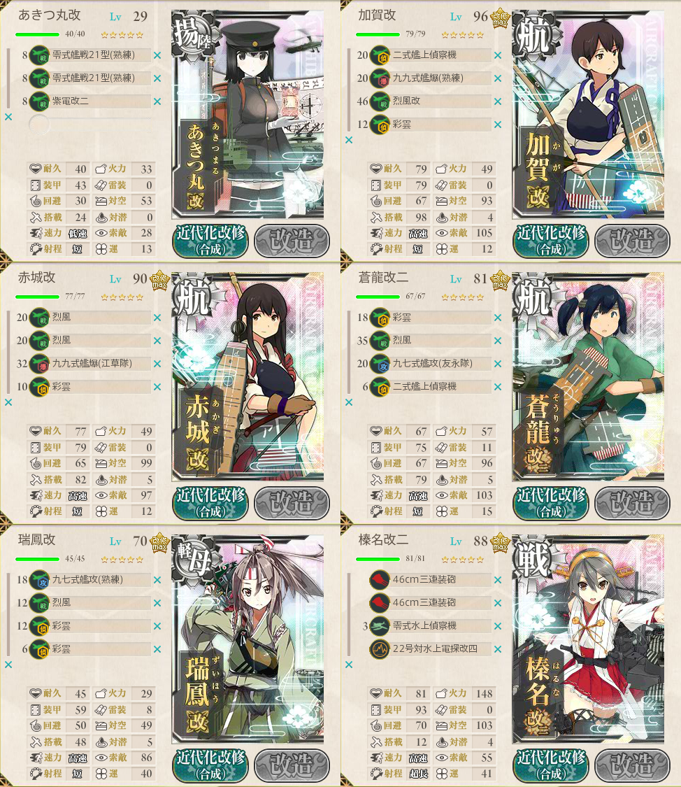 あきつ丸はもう少しレベリングしていく模様。また、装備も電探に変えるかも・・・