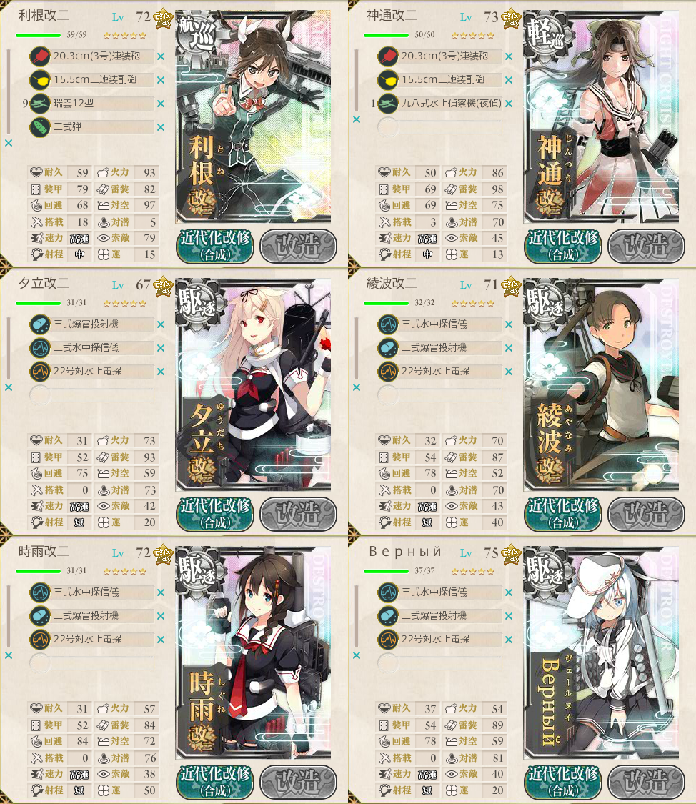 Cマスの対潜装備は、駆逐艦4隻に三式ソナー&爆雷を1セットづつで問題ない。