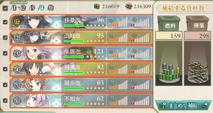 1周合計 燃料264 弾薬469 ボーキちょこっと。