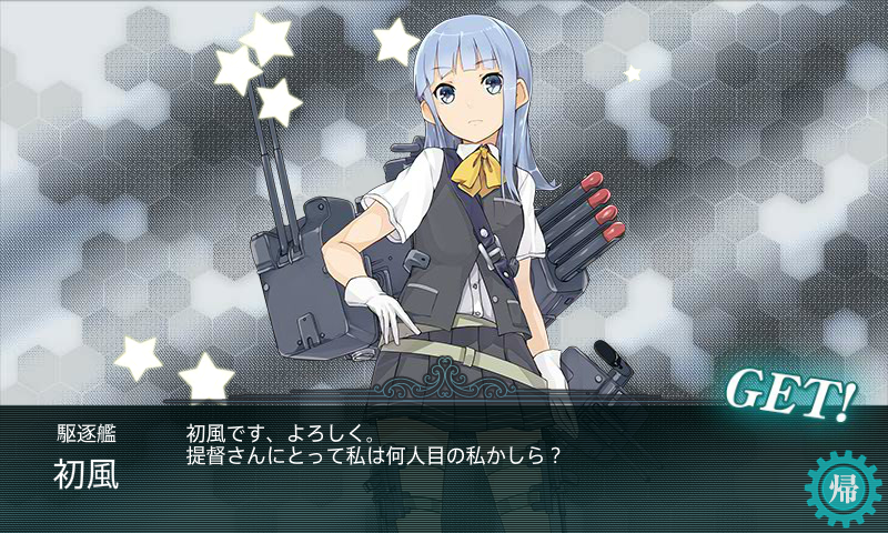 | 17 | BDHKの南ルート。 Hマスのフラタの砲撃で神通中破。 ボス戦ではmiss連発、中破被弾連発。 妙高が居なかったら撃破できなかった。。。 |