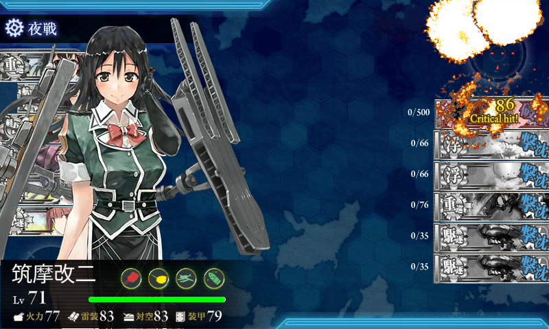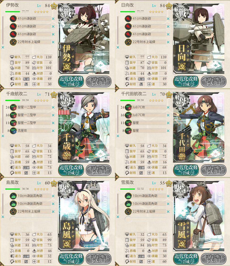 | 2 | 榛名・霧島の徹甲弾を三式弾に変更。DFHIの南ルート。 昼戦のみでボス撃破。 |