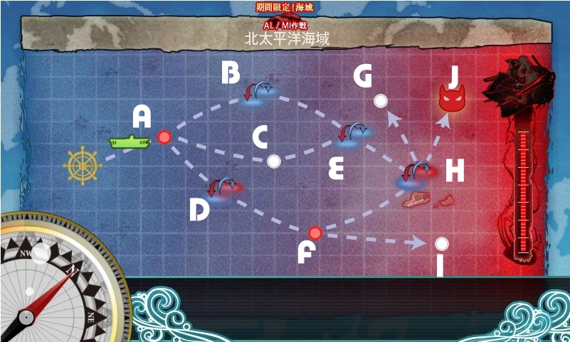 | 1 | Eマスにて赤城中破。それ以外は特に問題なくボス到達。 BEHの北ルートとなった。 |