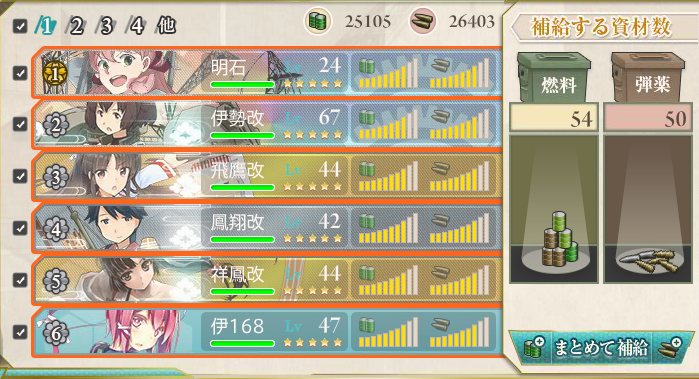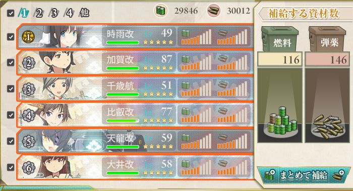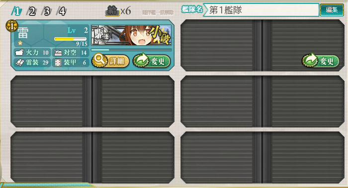 | 軽巡ヘ級/軽巡ヘ級/駆逐ロ級/駆逐ロ級/駆逐イ級/駆逐イ級 | 単縦/単横 | |