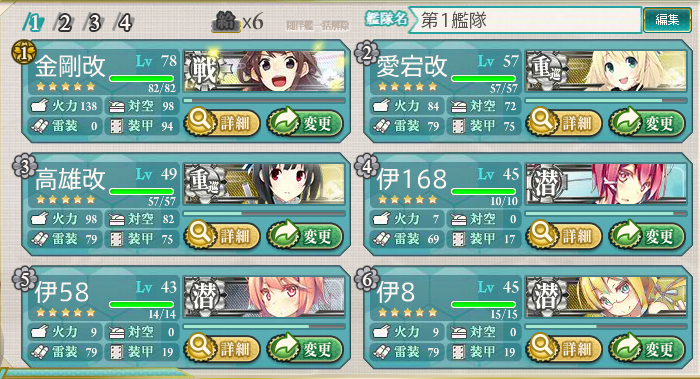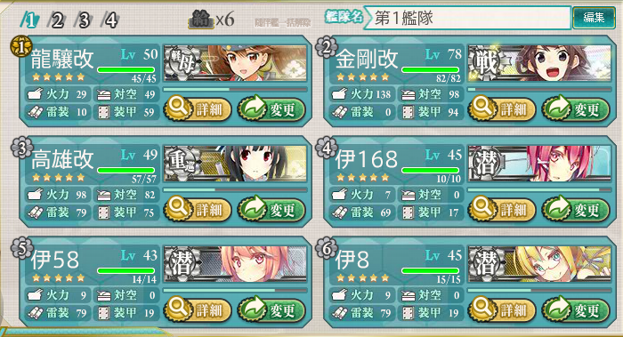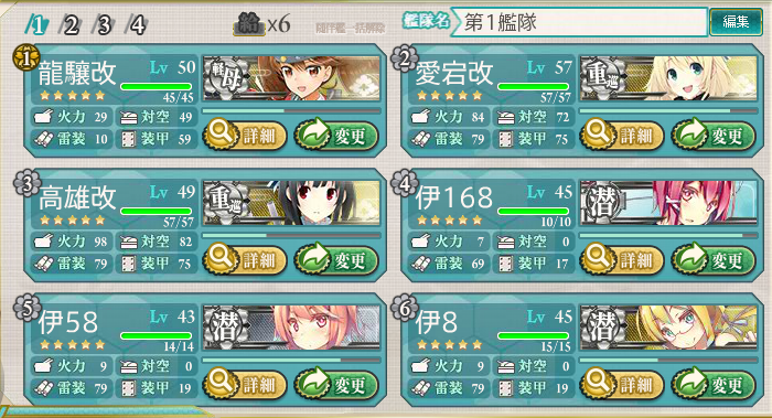 | 6 | (ローテ) | 潜水艦 | 魚雷 or ダメコン |